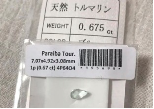 持ち主は元々アメリカからいくつかパライバトルマリンを取り寄せたそうなのですが、日本宝石科学協会に鑑別を頼んだところ、銅の含有がない普通のトルマリンとの結果が出たそうです。