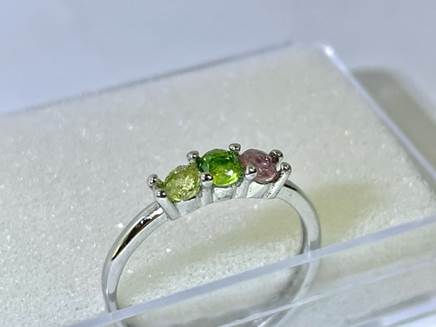 三連の指輪空枠は種類が少なく、使える石は3.2 ± 0.2mm径のラウンドのものに限られます。