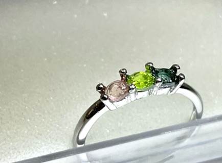 これまで、指輪もペンダントも、一つの石を中心に据える「ソリテール」で作ってきましたが、昨日初めて、小さなルースを3つ連ねて指輪にセットしてみました。