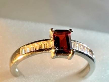 他に、長方形・ステップカットのレッドジルコンも指輪にしてみました。