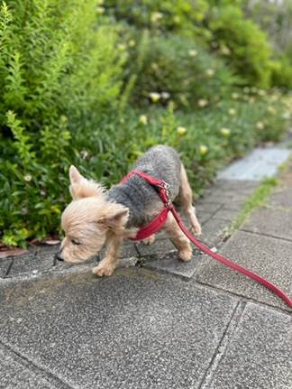 今週は大体いい気候になり、ルビーも朝夕の散歩が快適そうです。