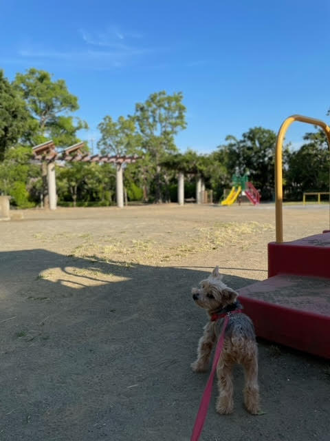 ルビーも暑さに戸惑った様子で、最寄りの公園まで行った後、その先に進むか迷った風情だったので、抱き上げて連れて帰りました。