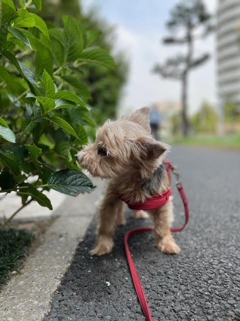 6時過ぎにルビーと散歩していると、近所のわんこたち何人かと会えました。(暑い日だとまったく出会わないことも多いです)