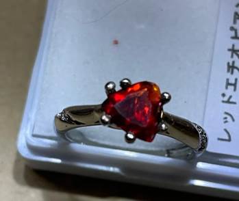 その中で、一風変わった三角形のレッドエチオピアンオパールのルースを指輪にしてみました。